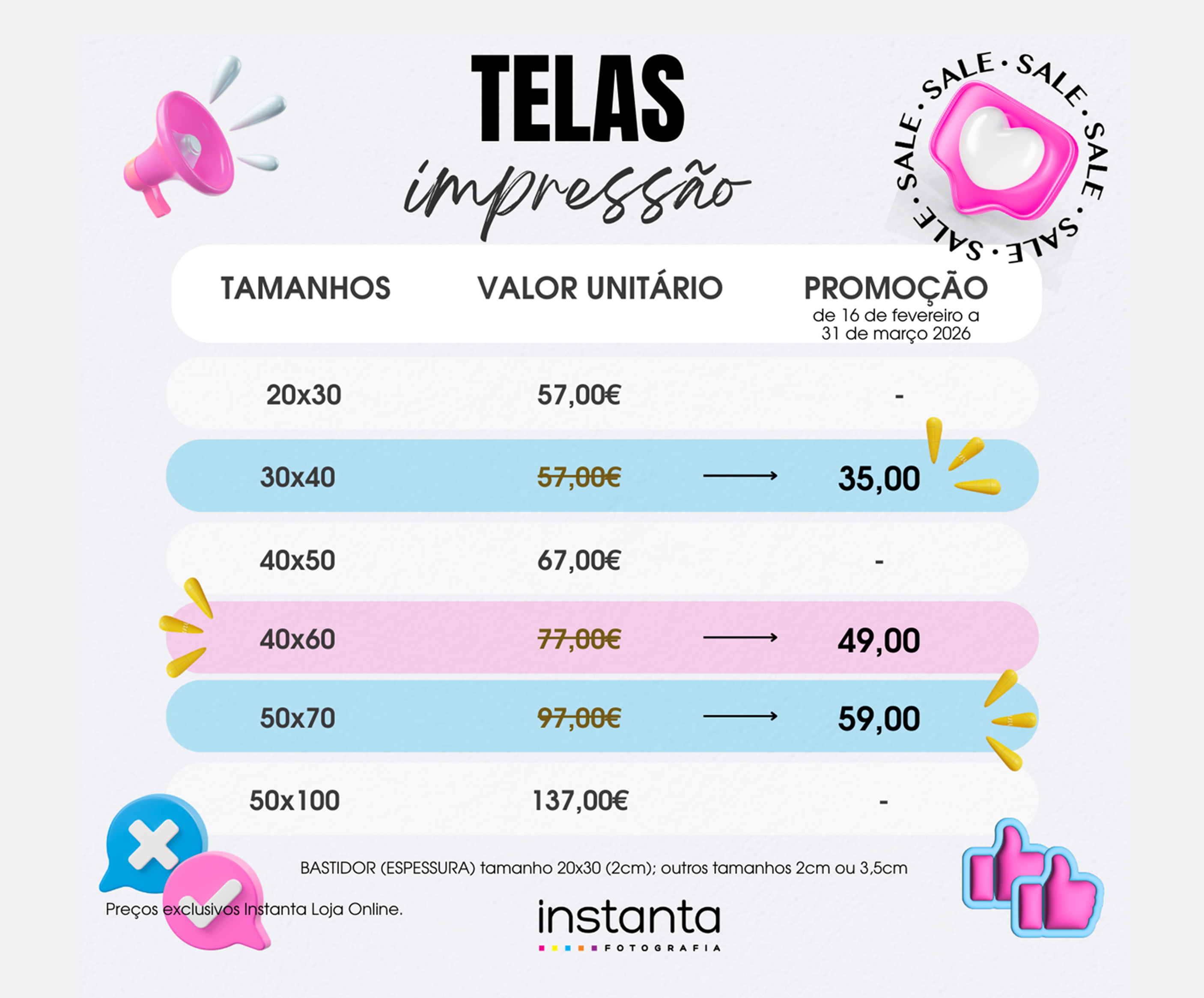 As suas melhores memórias merecem um lugar de destaque. Dê vida às suas imagens favoritas com um toque artístico e sofisticado. As nossas Telas Premium são ideais para destacar momentos especiais, criar ambientes acolhedores ou surpreender com um presente original e cheio de personalidade.